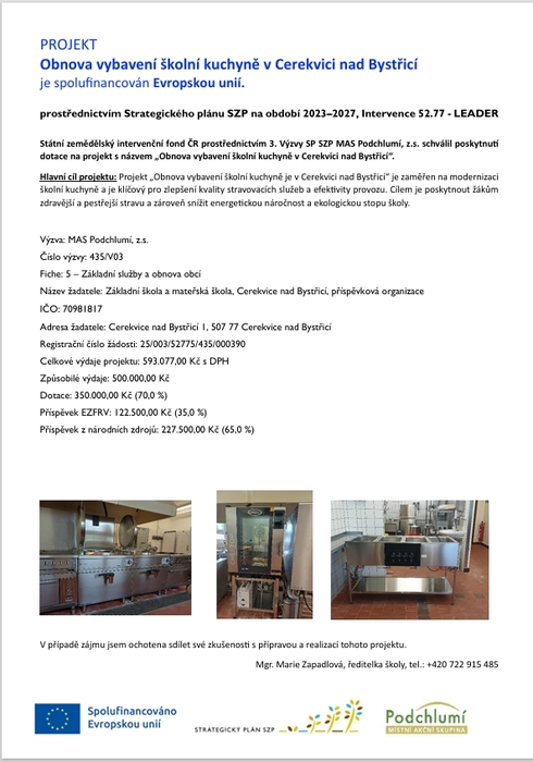 PROJEKT Obnova vybavení školní kuchyně v Cerekvici nad Bystřicí