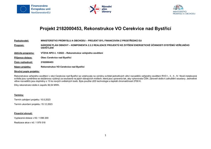 Projekt 2182000453, Rekonstrukce VO Cerekvice nad Bystřicí